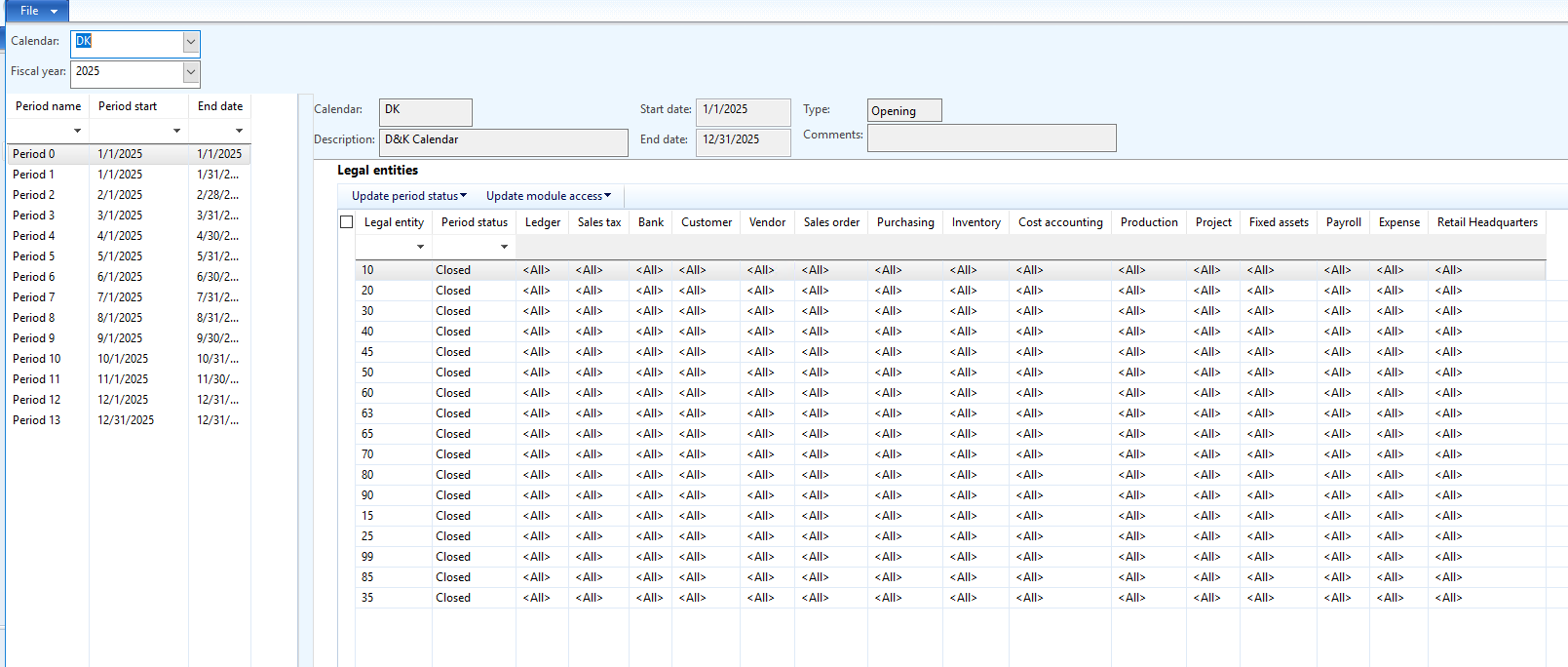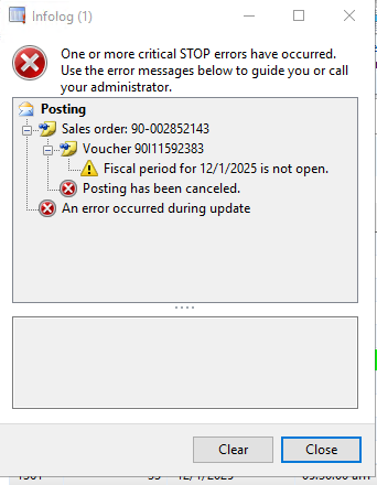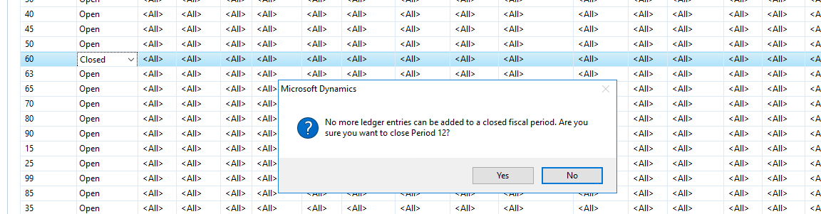 5. Select the date indicated by the fiscal error, select the dropdown and change from "closed" to "open"